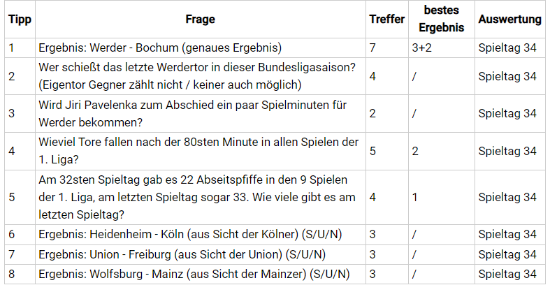 Hier der Link zum Tippspiel der letzter Woche: